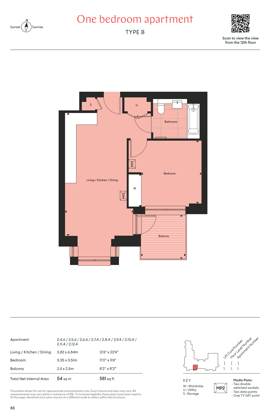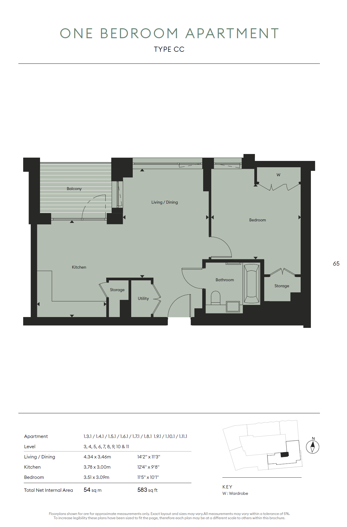 | 1 bedroom | JG-B | 581 | 3 | £780,000 |